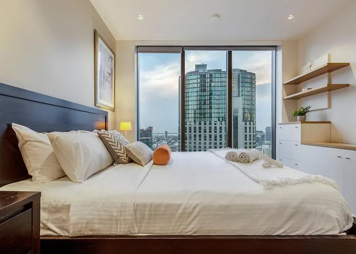 Situé dans le quartier "central des affaires de Melbourne" à Ville de Melbourne, Appartement Spectacular Panoramic City Views In Sky-High Luxe à Ville de Ville de Melbourne se trouve à seulement 600 mètres de la Tour Euréka et à 1 km d'Etihad Stadium, recommandé aux amateurs de sport.